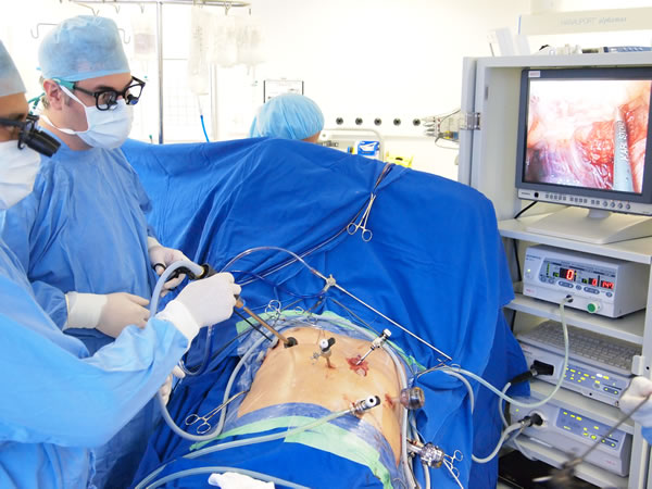A cirurgia pode ser realizada através de técnica toracoscópica convencional, onde o cirurgião encontra-se em campo cirúrgico, ou através do auxilio do robô, onde o cirurgião controla os movimentos sentado em um console.